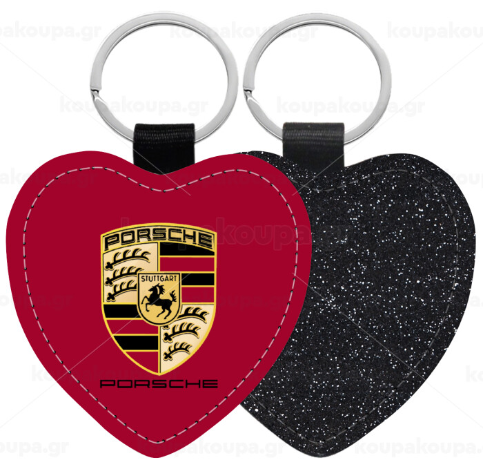 Porsche, Μπρελόκ PU δερμάτινο glitter καρδιά ΜΑΥΡΟ