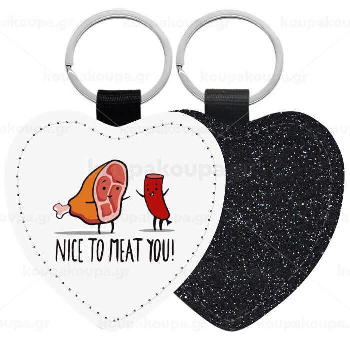 Nice to MEAT you, Μπρελόκ PU δερμάτινο glitter καρδιά ΜΑΥΡΟ