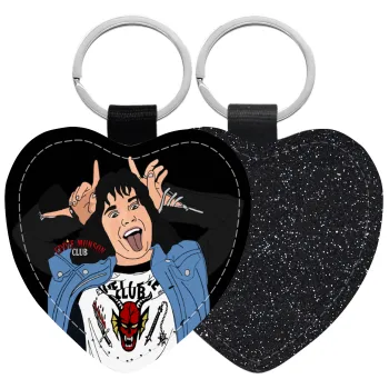 Eddie Munson, Μπρελόκ PU δερμάτινο glitter καρδιά ΜΑΥΡΟ