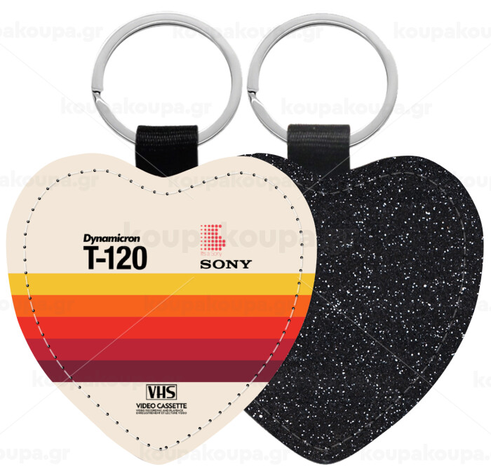 VHS sony dynamicron T-120, Μπρελόκ PU δερμάτινο glitter καρδιά ΜΑΥΡΟ