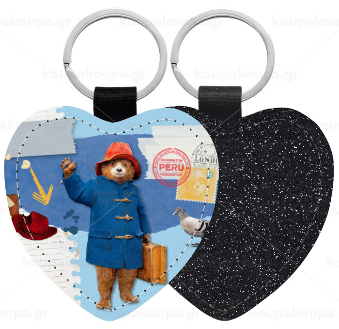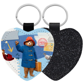 Αρκουδάκι Πάντινγκτον, Μπρελόκ PU δερμάτινο glitter καρδιά ΜΑΥΡΟ