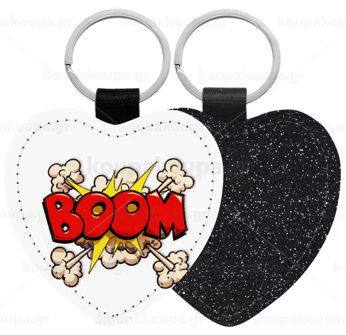 BOOM!!!, Μπρελόκ PU δερμάτινο glitter καρδιά ΜΑΥΡΟ