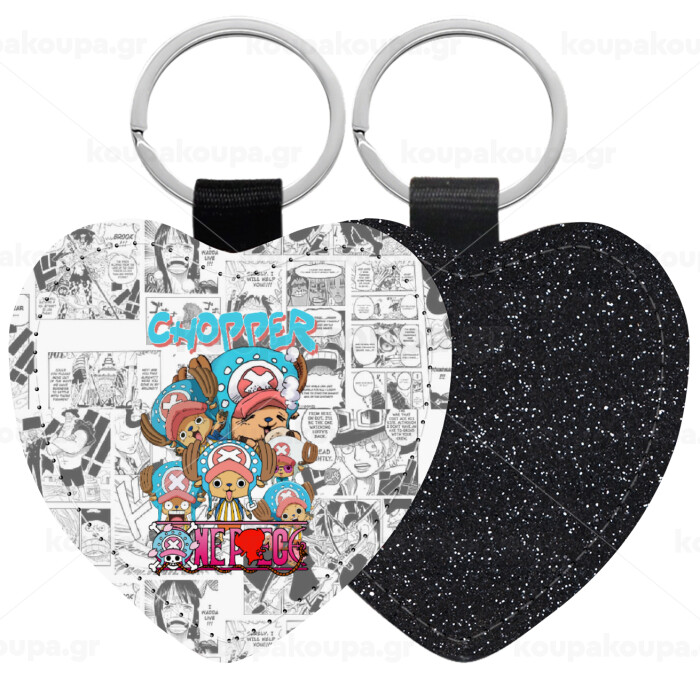 Chopper One Piece, Μπρελόκ PU δερμάτινο glitter καρδιά ΜΑΥΡΟ