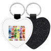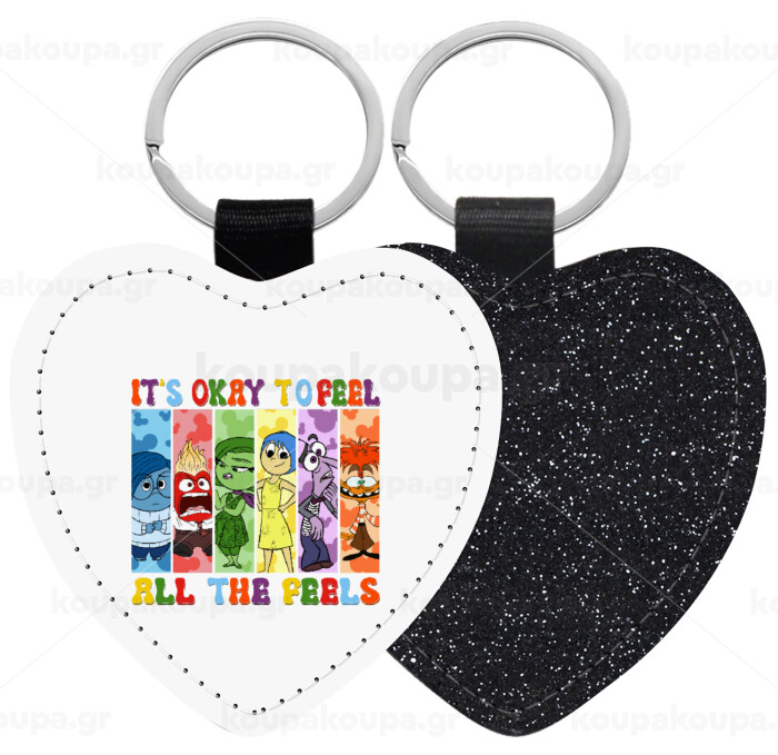 Inside Out It's Okay To Feel All The Feels , Μπρελόκ PU δερμάτινο glitter καρδιά ΜΑΥΡΟ
