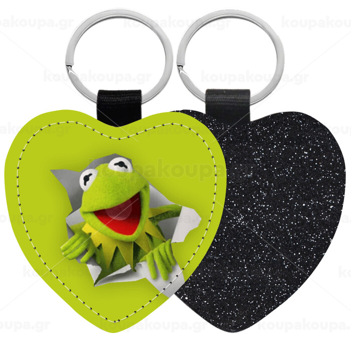 Kermit the frog, Μπρελόκ PU δερμάτινο glitter καρδιά ΜΑΥΡΟ