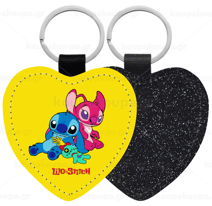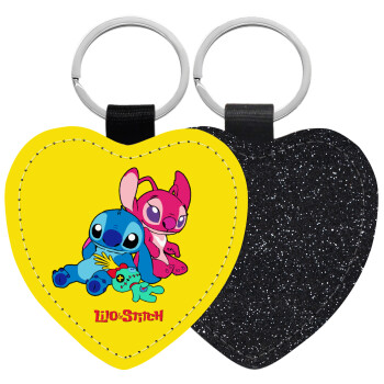 Lilo & Stitch, Μπρελόκ PU δερμάτινο glitter καρδιά ΜΑΥΡΟ