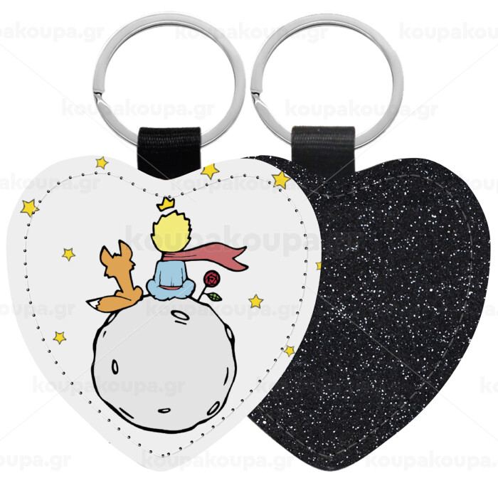 Little prince, Μπρελόκ PU δερμάτινο glitter καρδιά ΜΑΥΡΟ
