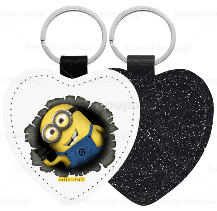 Minions hi, Μπρελόκ PU δερμάτινο glitter καρδιά ΜΑΥΡΟ