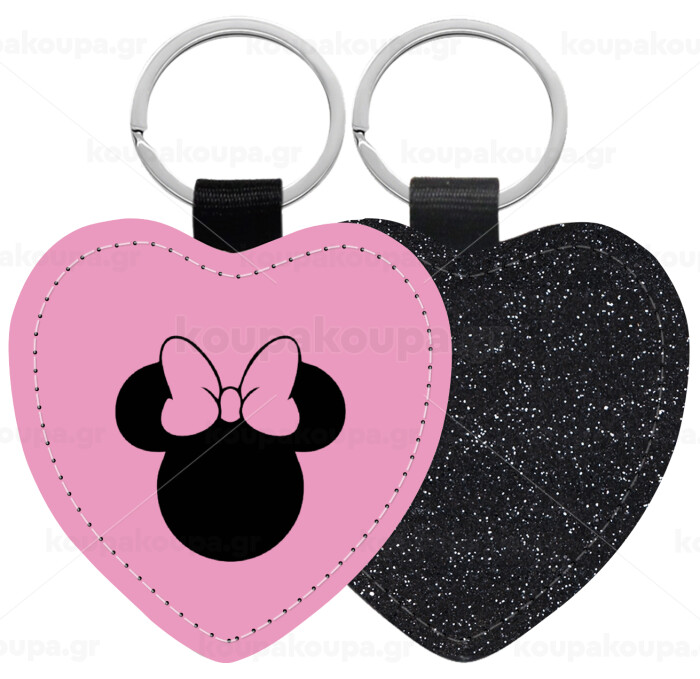 mouse girl, Μπρελόκ PU δερμάτινο glitter καρδιά ΜΑΥΡΟ