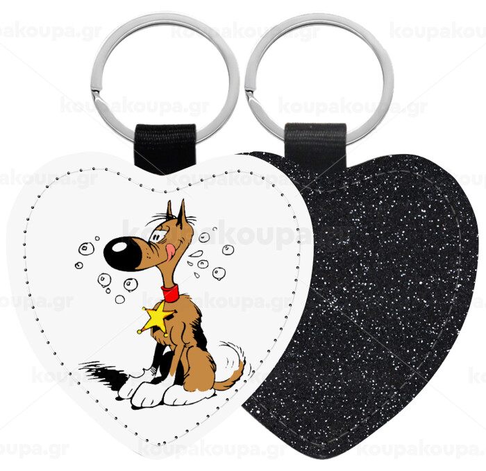 Rantanplan (Ρανταπλάν), Μπρελόκ PU δερμάτινο glitter καρδιά ΜΑΥΡΟ