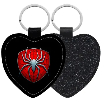 Spider-man, Μπρελόκ PU δερμάτινο glitter καρδιά ΜΑΥΡΟ