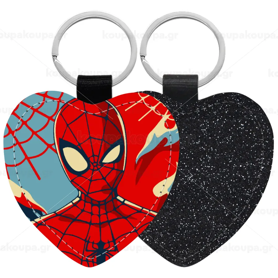 Spiderman kid, Μπρελόκ PU δερμάτινο glitter καρδιά ΜΑΥΡΟ