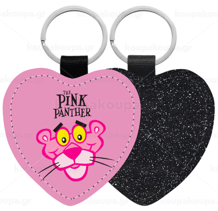The pink panther, Μπρελόκ PU δερμάτινο glitter καρδιά ΜΑΥΡΟ