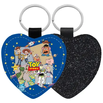 toystory characters, Μπρελόκ PU δερμάτινο glitter καρδιά ΜΑΥΡΟ