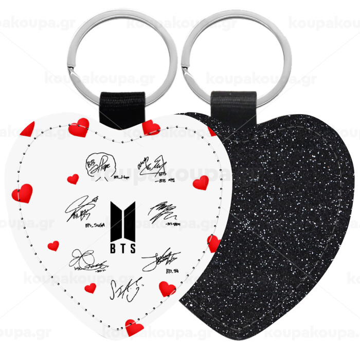 BTS signatures, Μπρελόκ PU δερμάτινο glitter καρδιά ΜΑΥΡΟ