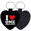 I Love, One Direction, Μπρελόκ PU δερμάτινο glitter καρδιά ΜΑΥΡΟ