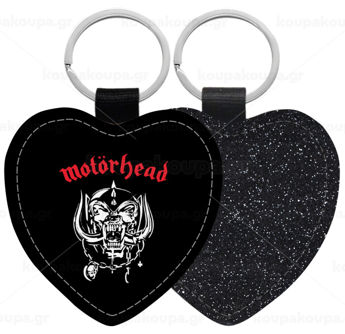 motorhead, Μπρελόκ PU δερμάτινο glitter καρδιά ΜΑΥΡΟ