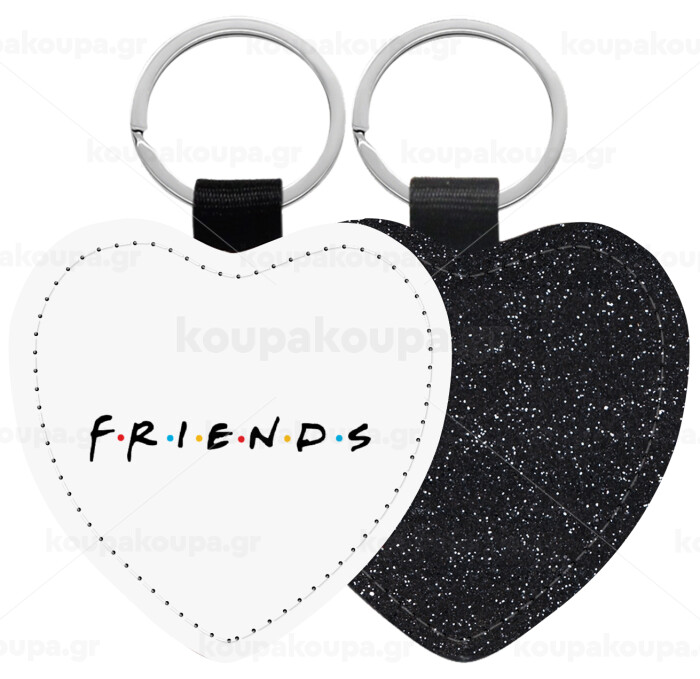 Friends, Μπρελόκ PU δερμάτινο glitter καρδιά ΜΑΥΡΟ