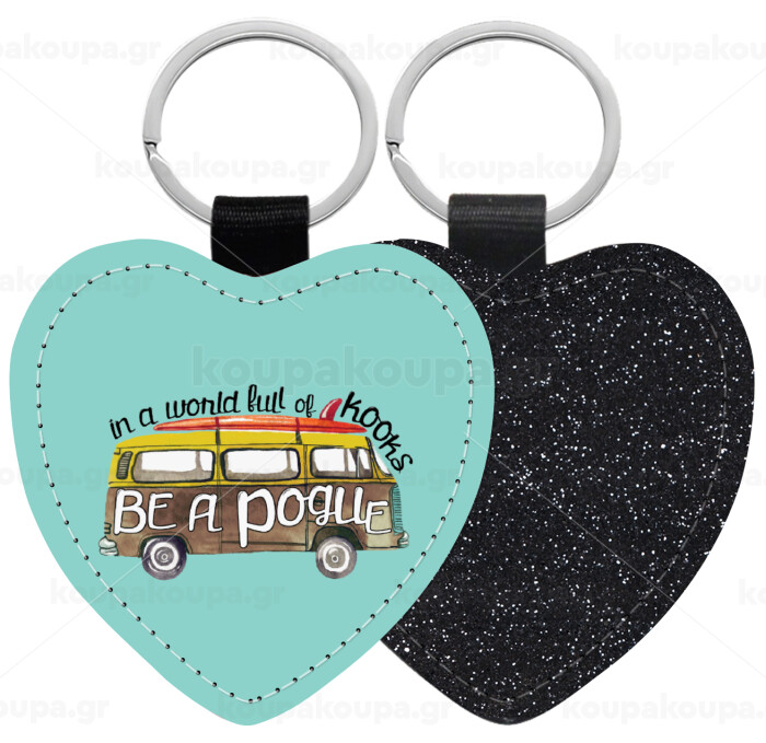 Outerbanks Pogue Life, Μπρελόκ PU δερμάτινο glitter καρδιά ΜΑΥΡΟ