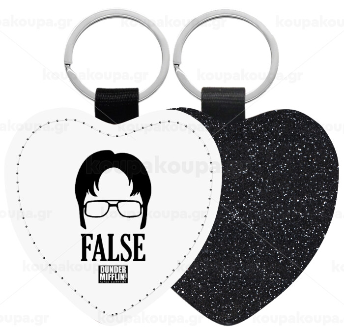 The office Dwight false, Μπρελόκ PU δερμάτινο glitter καρδιά ΜΑΥΡΟ