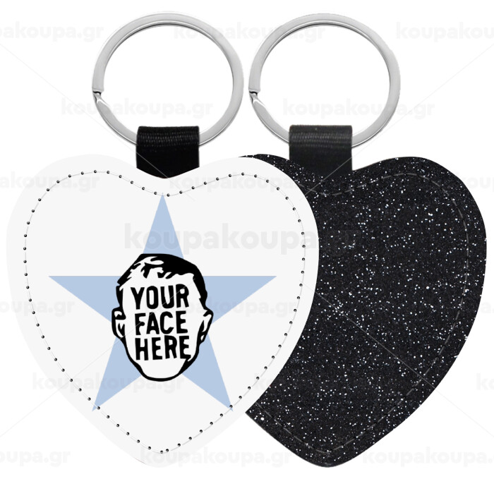 Mπρελόκ από δερματίνη με glitter στην μία πλευρά και στην άλλη δερματίνη μεγάλης αντοχής. Κρίκος ασφάλειας για τα κλειδιά.