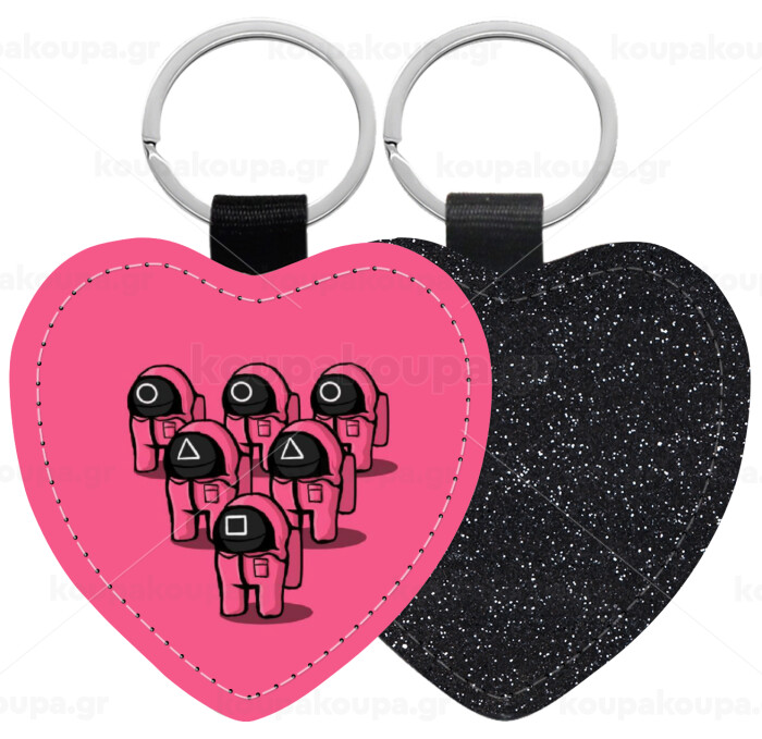The squid game among us, Μπρελόκ PU δερμάτινο glitter καρδιά ΜΑΥΡΟ