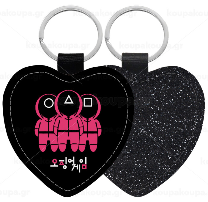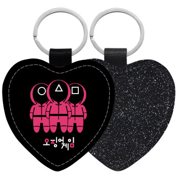 The squid game, Μπρελόκ PU δερμάτινο glitter καρδιά ΜΑΥΡΟ
