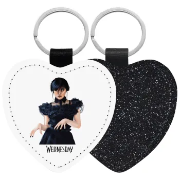 Wednesday Adams, dance with hands, Μπρελόκ PU δερμάτινο glitter καρδιά ΜΑΥΡΟ
