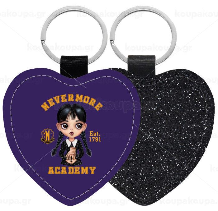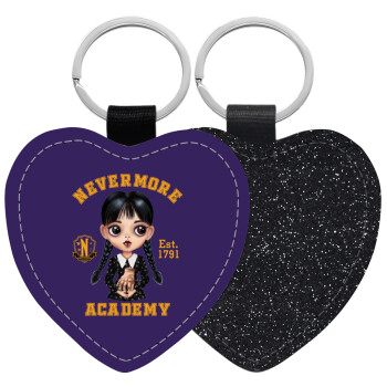 Wednesday Adams, nevermore, Μπρελόκ PU δερμάτινο glitter καρδιά ΜΑΥΡΟ