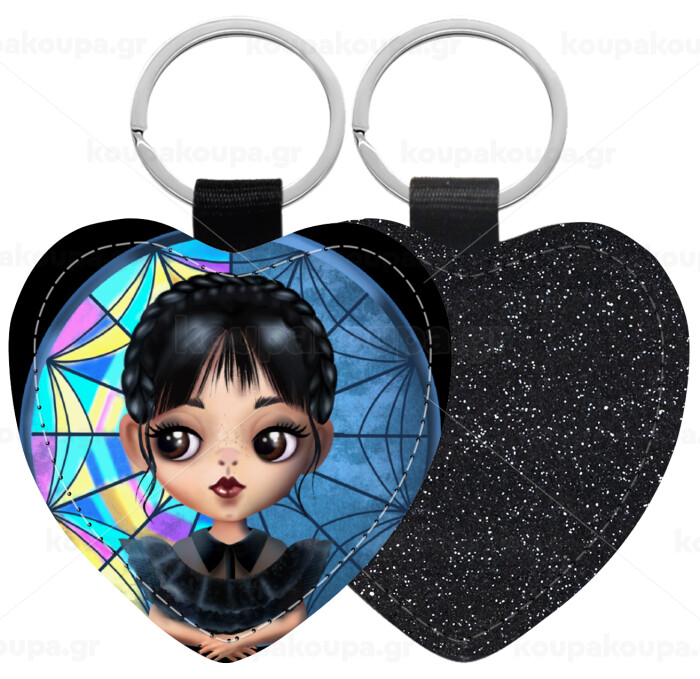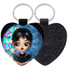 Wednesday big eyes, Μπρελόκ PU δερμάτινο glitter καρδιά ΜΑΥΡΟ