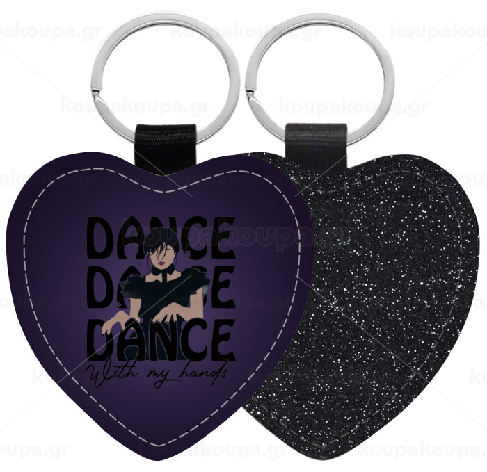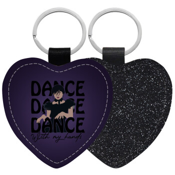 Wednesday dance dance dance, Μπρελόκ PU δερμάτινο glitter καρδιά ΜΑΥΡΟ