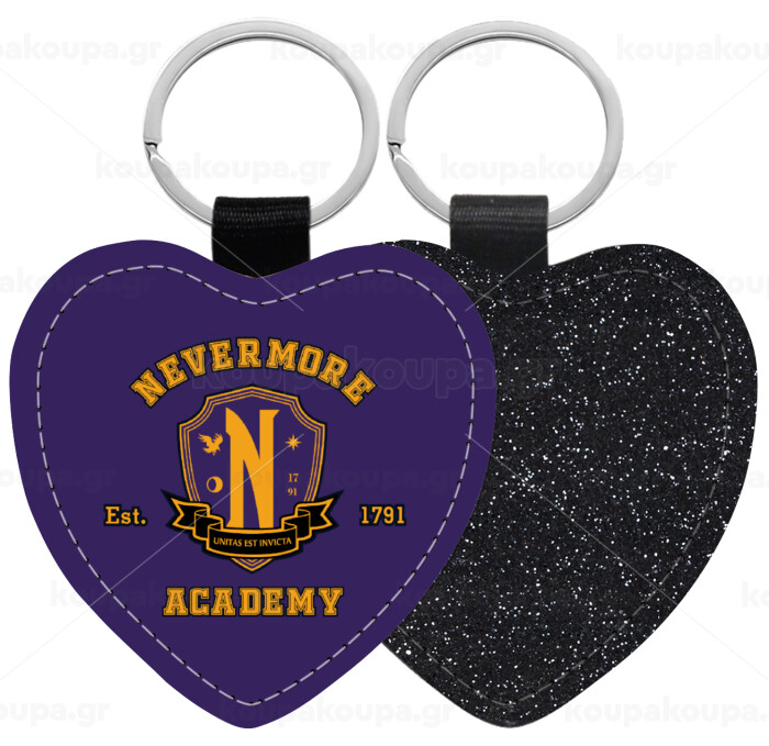 Wednesday Nevermore Academy University, Μπρελόκ PU δερμάτινο glitter καρδιά ΜΑΥΡΟ