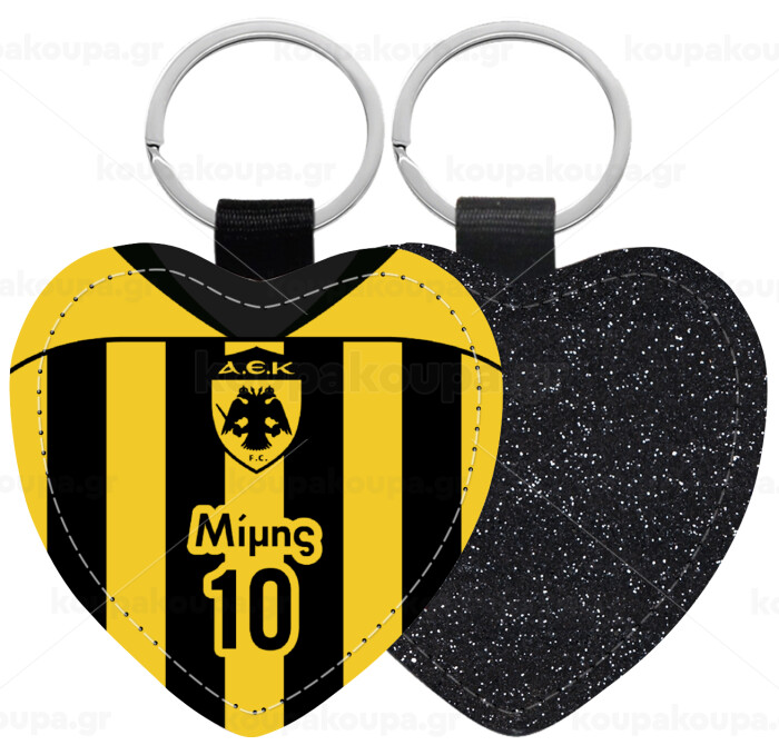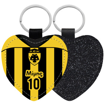 ΑΕΚ εμφάνιση, Μπρελόκ PU δερμάτινο glitter καρδιά ΜΑΥΡΟ