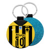 Mπρελόκ από δερματίνη με glitter στην μία πλευρά και στην άλλη δερματίνη μεγάλης αντοχής. Κρίκος ασφάλειας για τα κλειδιά.