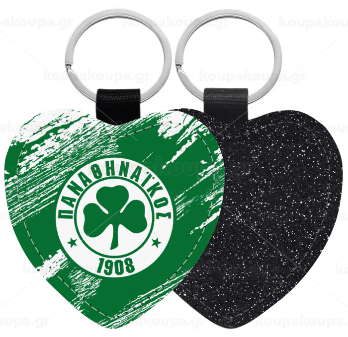 Π.Α.Ο., Μπρελόκ PU δερμάτινο glitter καρδιά ΜΑΥΡΟ