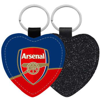 Arsenal, Μπρελόκ PU δερμάτινο glitter καρδιά ΜΑΥΡΟ