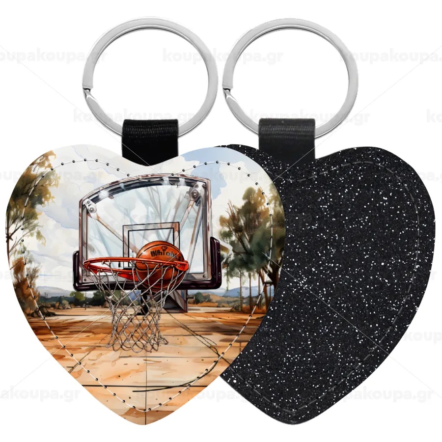 Basketball, Μπρελόκ PU δερμάτινο glitter καρδιά ΜΑΥΡΟ