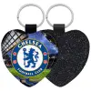 FC Chelsea, Μπρελόκ PU δερμάτινο glitter καρδιά ΜΑΥΡΟ