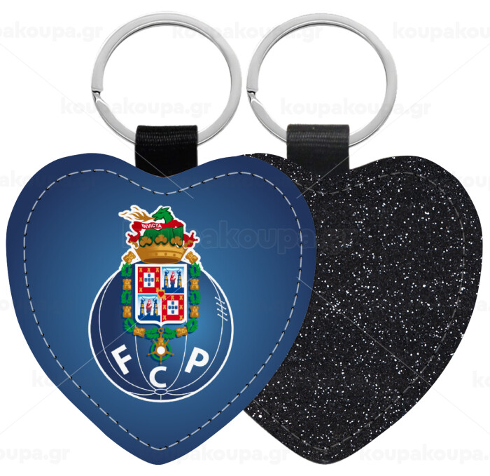 FCP, Μπρελόκ PU δερμάτινο glitter καρδιά ΜΑΥΡΟ