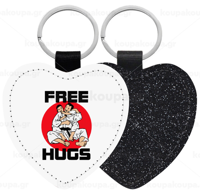 JUDO free hugs, Μπρελόκ PU δερμάτινο glitter καρδιά ΜΑΥΡΟ