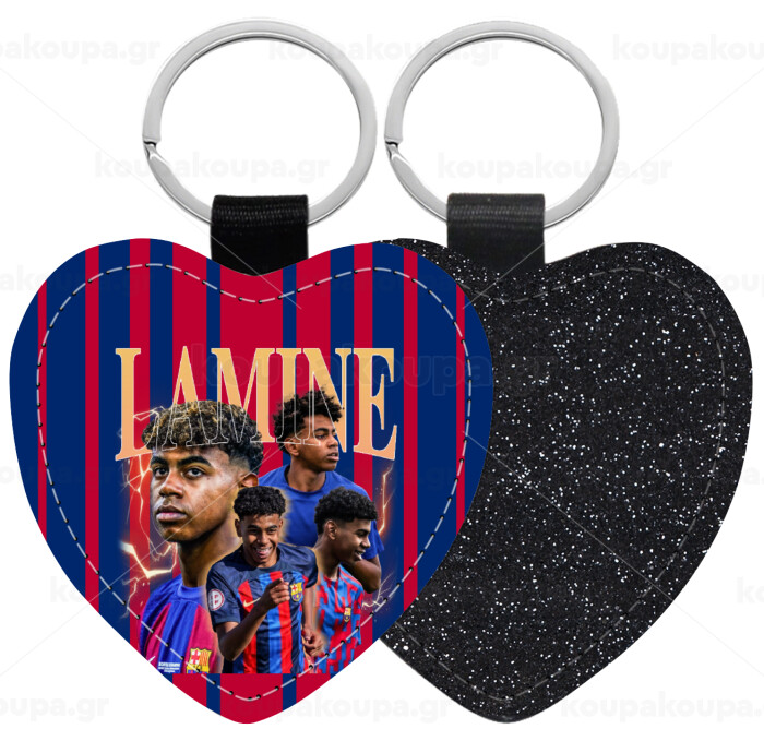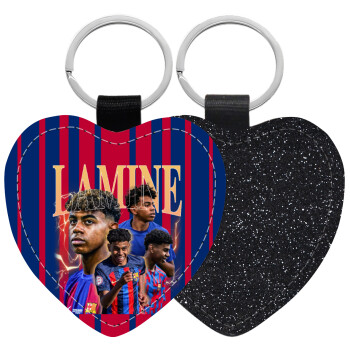 lamine yamal FCB, Μπρελόκ PU δερμάτινο glitter καρδιά ΜΑΥΡΟ