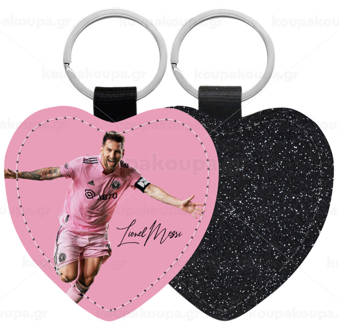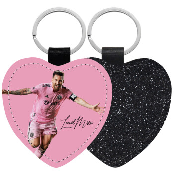 Lionel Messi inter miami jersey, Μπρελόκ PU δερμάτινο glitter καρδιά ΜΑΥΡΟ