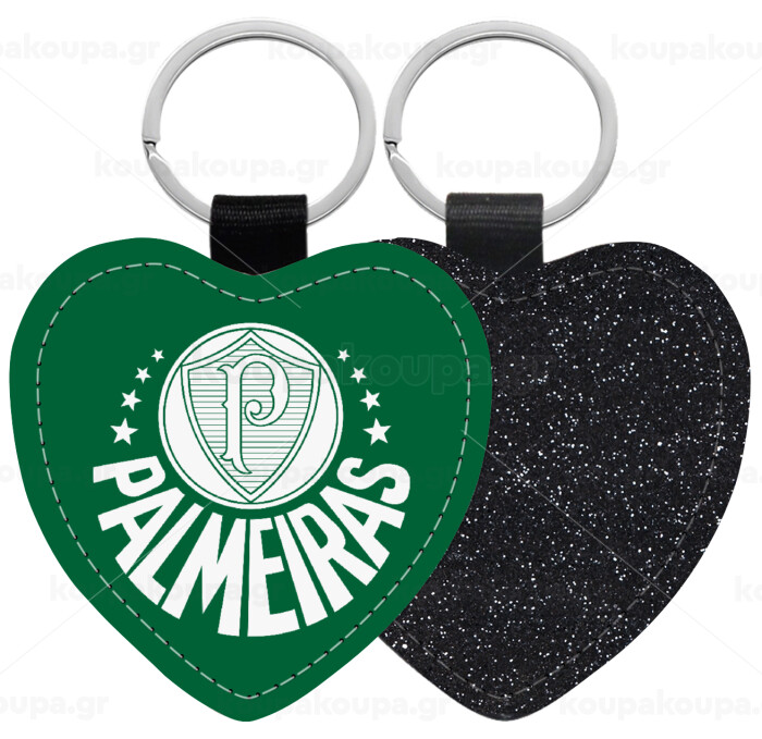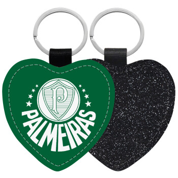 Palmeiras, Μπρελόκ PU δερμάτινο glitter καρδιά ΜΑΥΡΟ