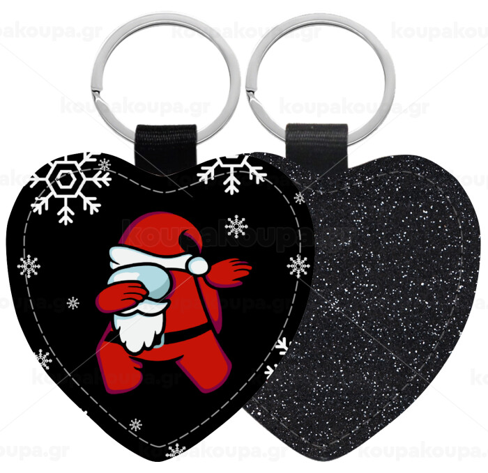 Among US Xmas, Μπρελόκ PU δερμάτινο glitter καρδιά ΜΑΥΡΟ