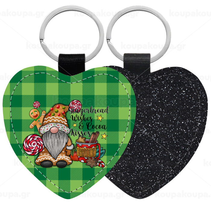 Gingerbread Wishes, Μπρελόκ PU δερμάτινο glitter καρδιά ΜΑΥΡΟ