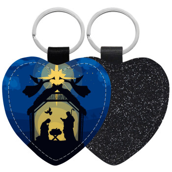 Η γέννηση του Ιησού φάτνη, Μπρελόκ PU δερμάτινο glitter καρδιά ΜΑΥΡΟ
