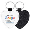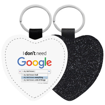 I don't need Google my dad..., Μπρελόκ PU δερμάτινο glitter καρδιά ΜΑΥΡΟ
