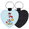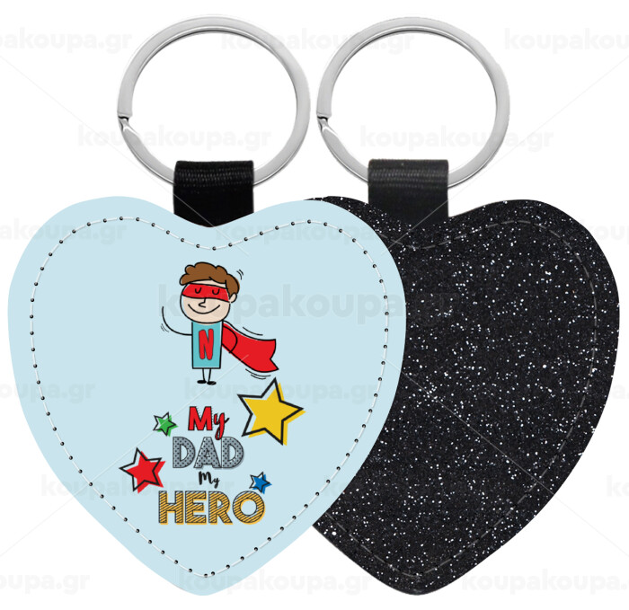 My Dad, my Hero!!!, Μπρελόκ PU δερμάτινο glitter καρδιά ΜΑΥΡΟ