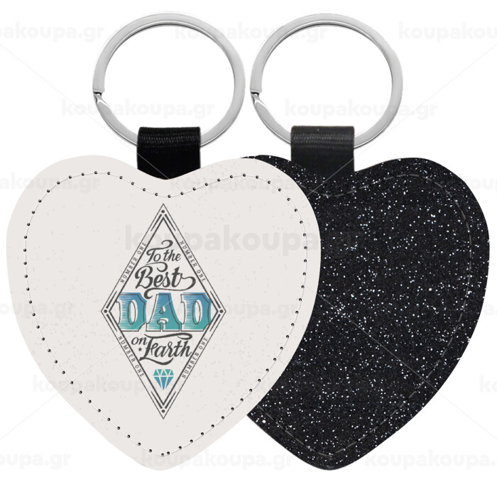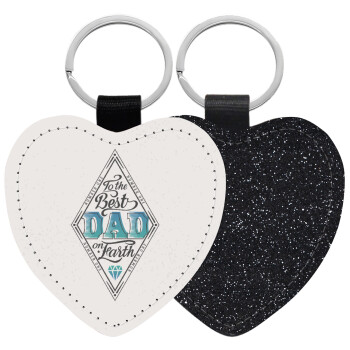To the best DAD on earth, Μπρελόκ PU δερμάτινο glitter καρδιά ΜΑΥΡΟ