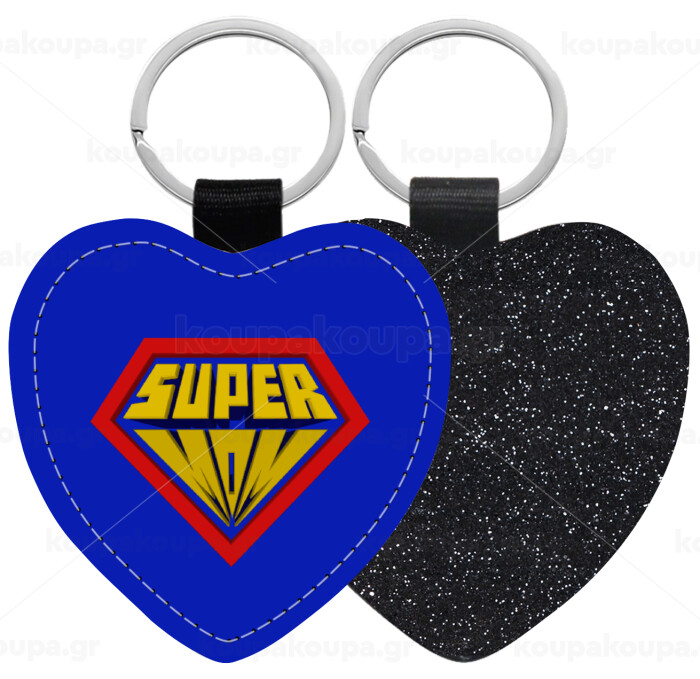 Super Mom 3D, Μπρελόκ PU δερμάτινο glitter καρδιά ΜΑΥΡΟ